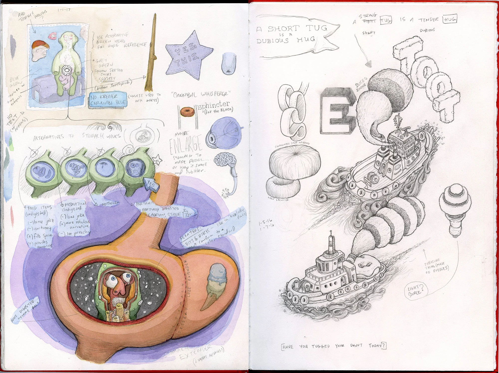 Sketchbook: A Short Tug is a Dubious Hug in progress Jan 7 Written By scott teplin View fullsize sketchbookwatercolorgraphite scott teplin http://www.teplin.com