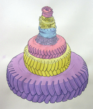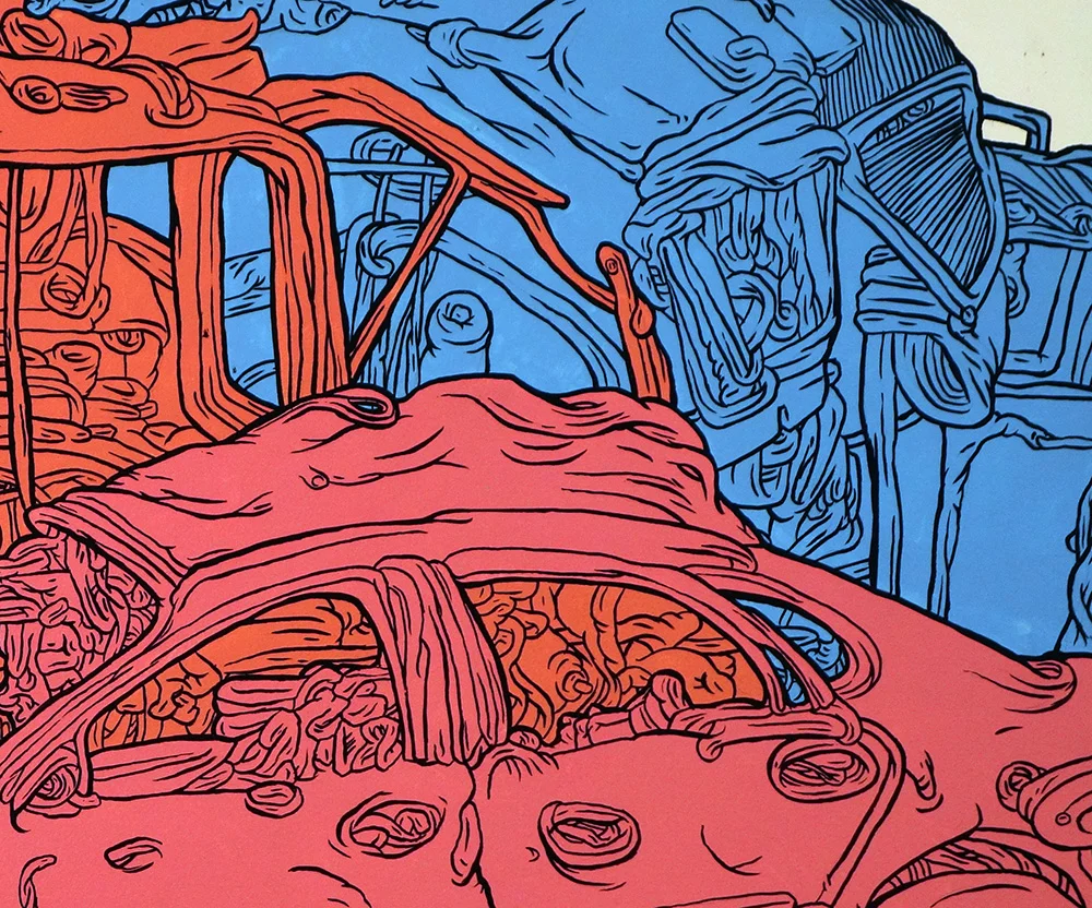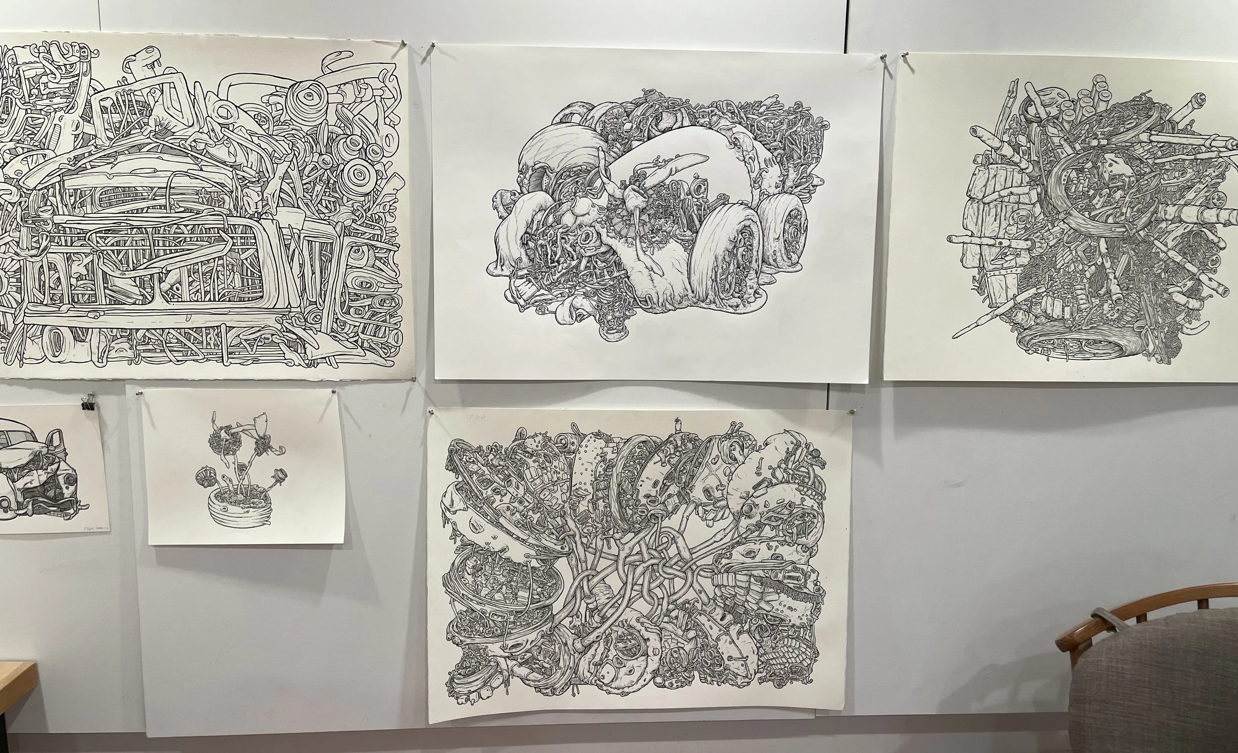 Drawn from April 2022 photos of destroyed Rissian tanks in Ukraine. 22” x 33” pen & ink, 2022. More like this…