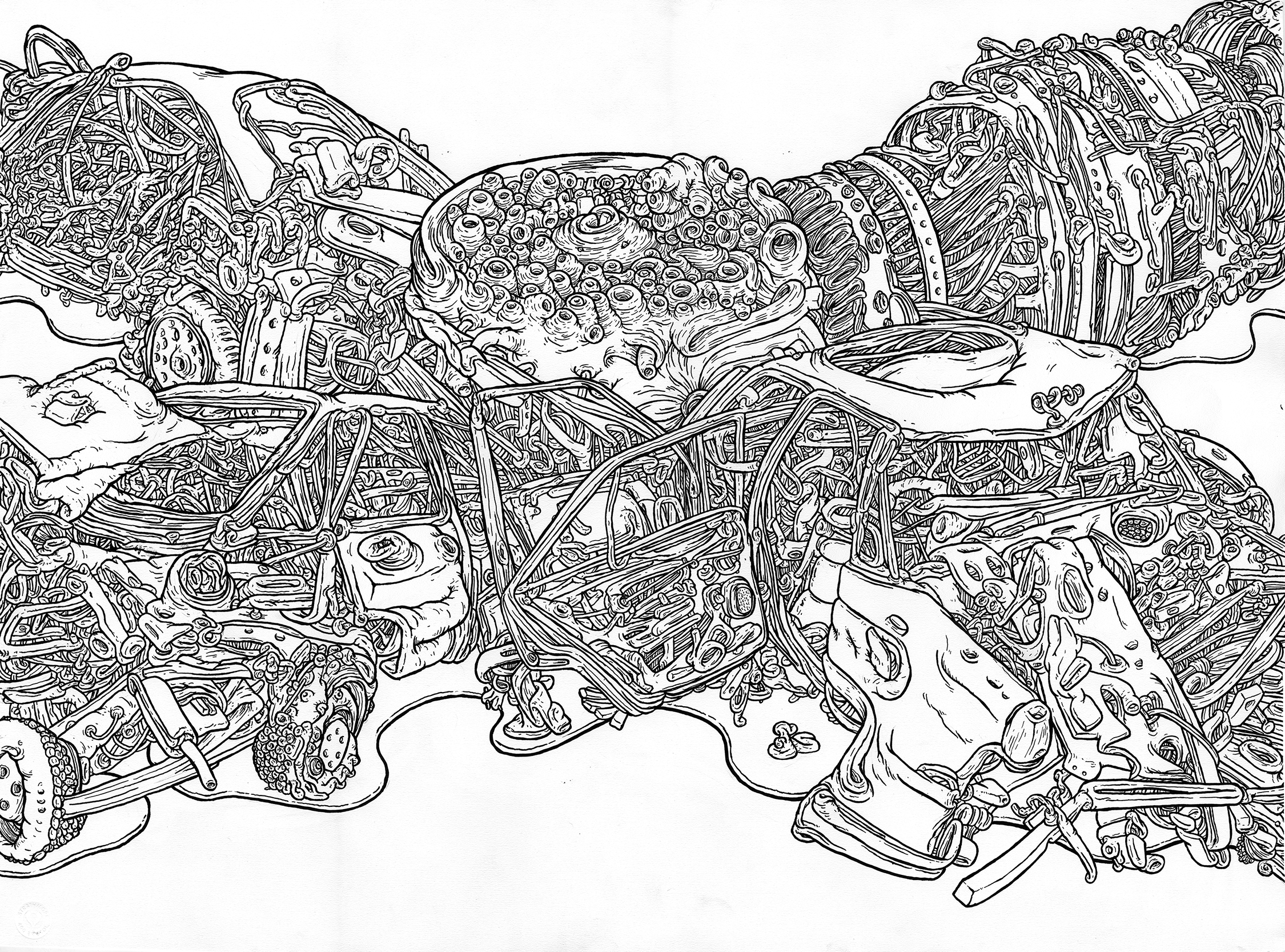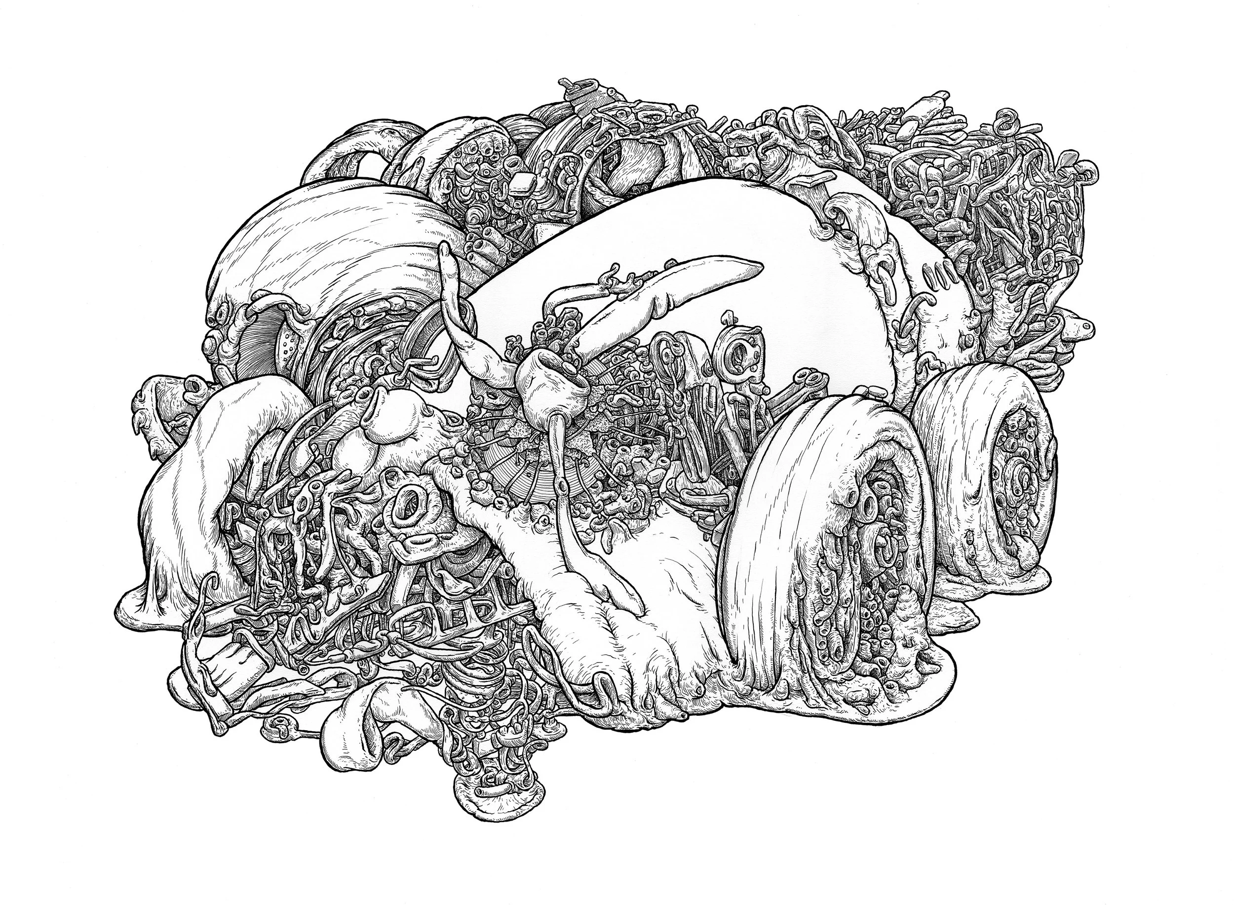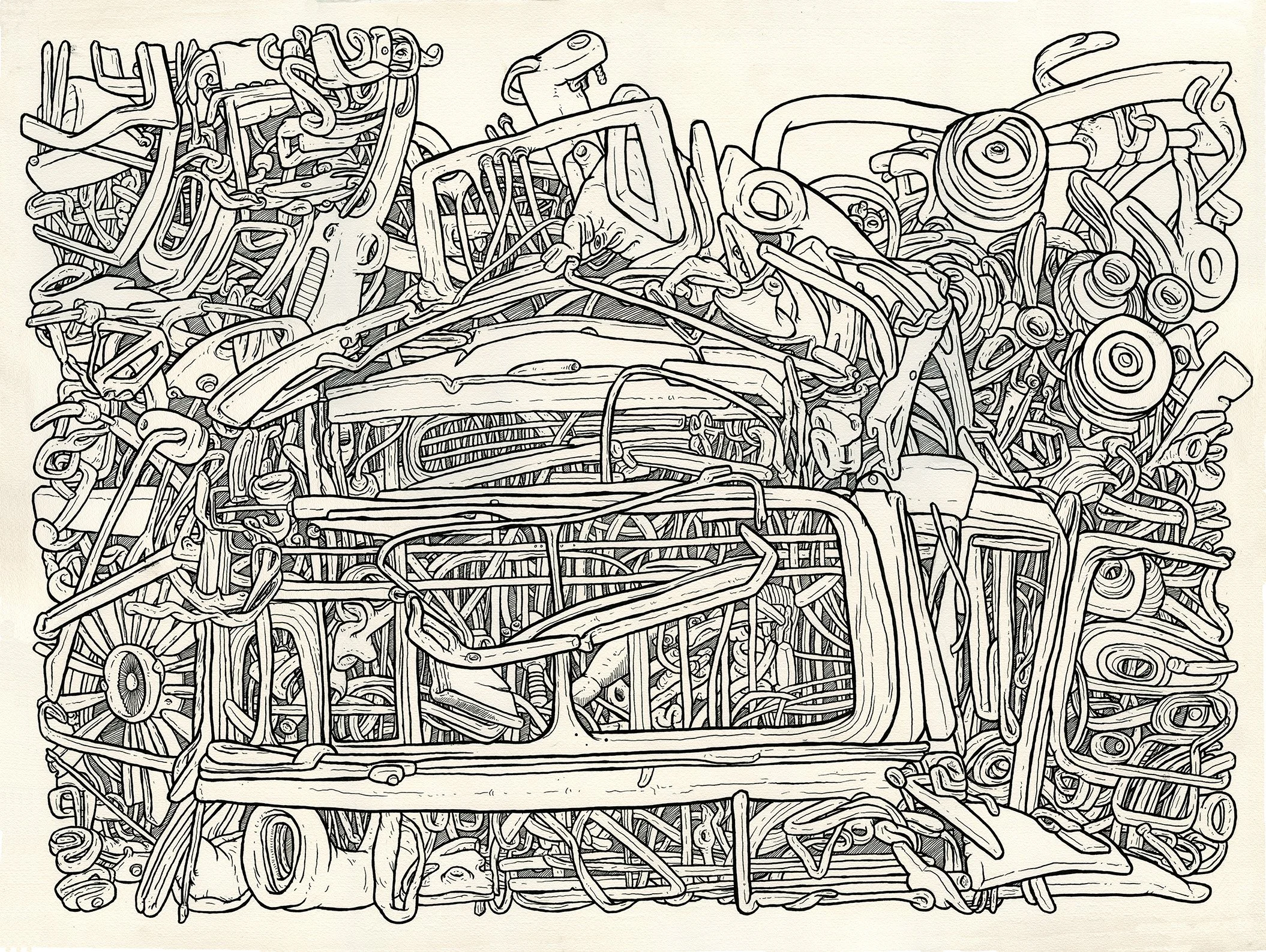 Tank 1 - pen & ink on 22" x 30" paper, 2022