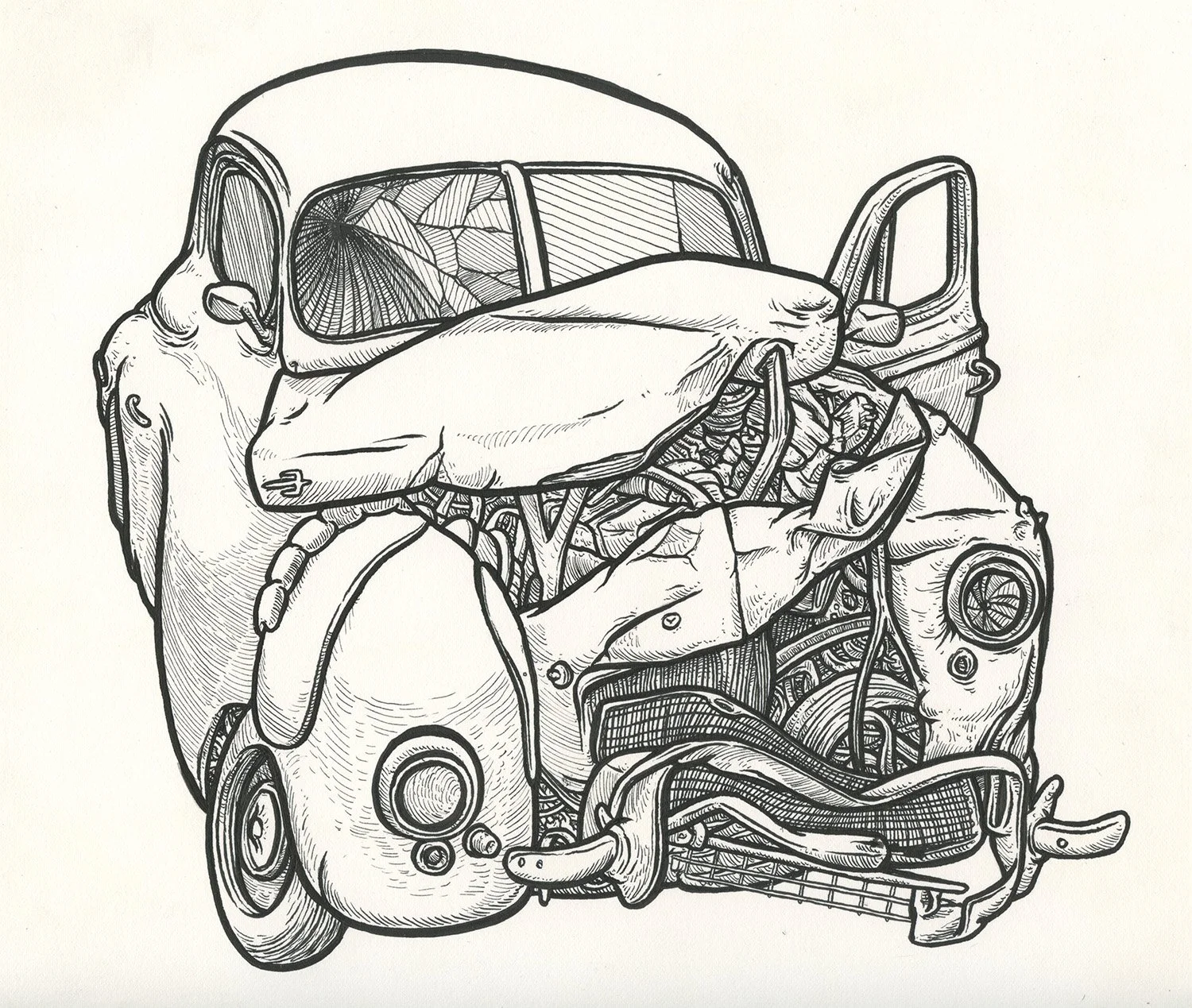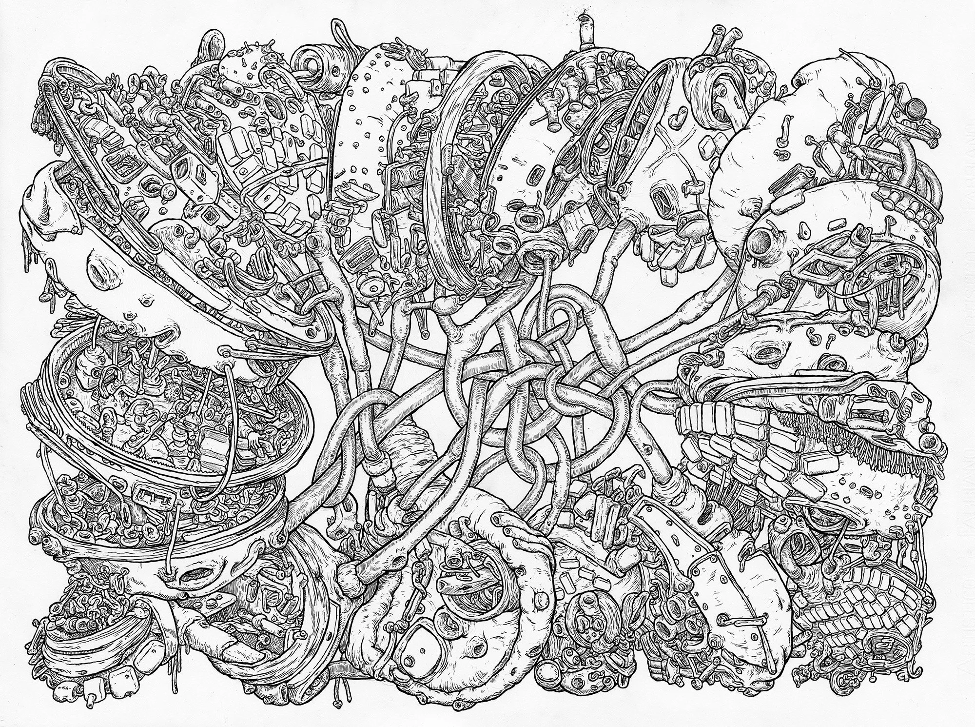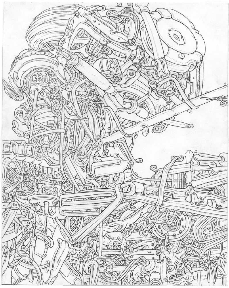 Tank 1 - pen & ink on 22" x 30" paper, 2022